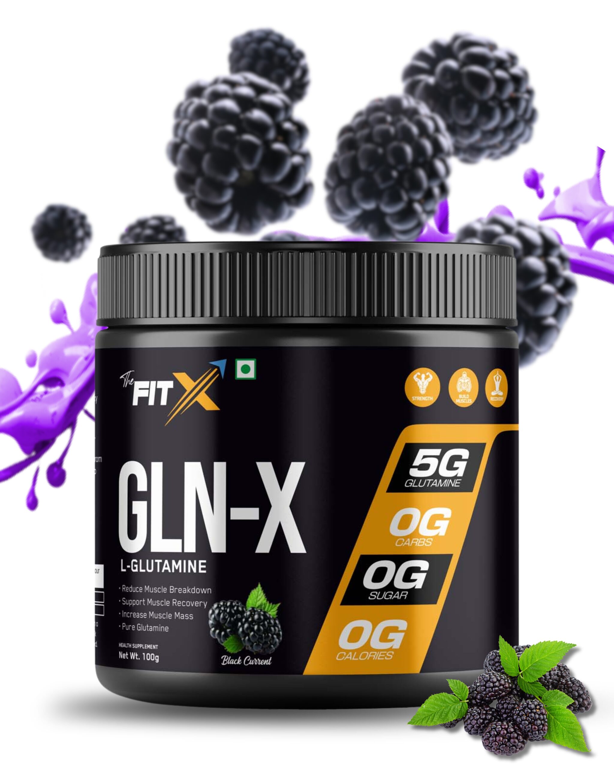 GLN-X | L GLUTAMINE | 100 gm | Flavour Black Current